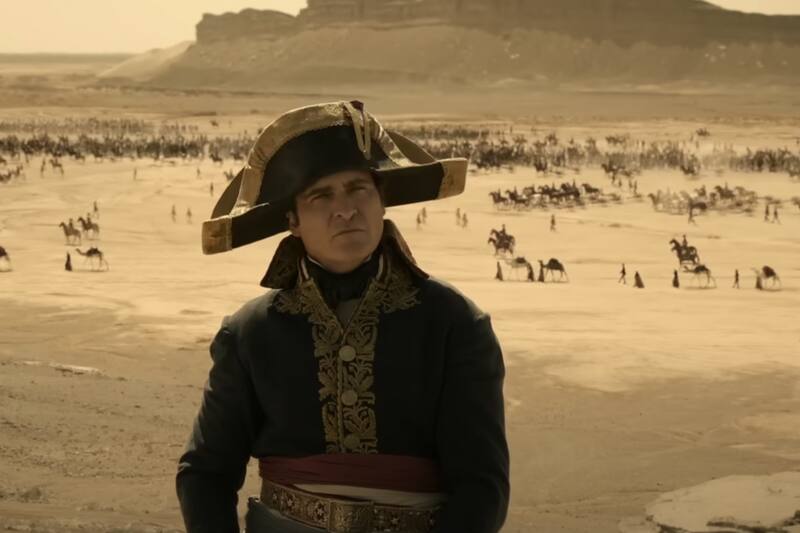 Esta secuencia está además en el trailer y también de ahí se sacaron imágenes de promoción. El impasible Napoleón de Joaquin Phoenix observa las pirámides de Egipto y ordena que sus hombres lancen una bala de cañón contra la punta de una de ellas. Lo que sigue es el posterior derrumbe de esta parte de la milenaria construcción. El segmento es tan poco verosímil que probablemente fue hasta una broma del realizador Ridley Scott. Al menos, es lo que cuenta uno de los asesores históricos del filme. En la práctica, en la campaña de Egipto de 1798 a 1801, los ejércitos franceses ni siquiera estuvieron demasiado cerca de las gigantescas tumbas faraónicas.