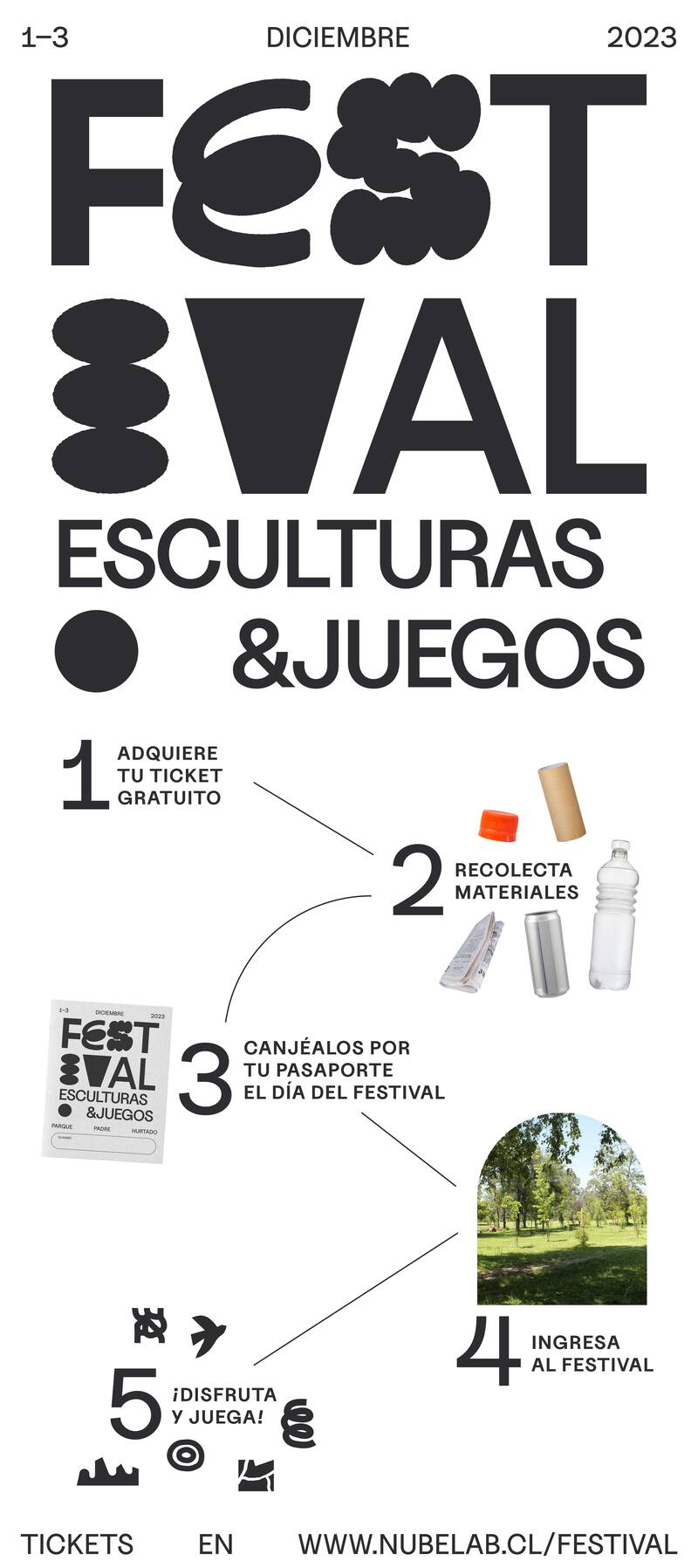 El festival presenta seis esculturas diseñadas por artistas jóvenes con sentido interactivo: no son obras para mirar sino para jugar e interactuar con ellas. Junto a las esculturas, el festival contará con cafetería, música y dos mesas de conversación: el sábado, Ocio, Curiosidad y Juego, con Carla Pinochet, Valeska Grau y Ricardo Greene. y el domingo, Arte, Imaginación y Compostaje, con Andrea Casals-Hill y Pablo Chiuminatto.