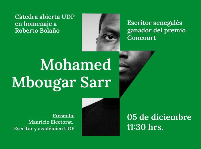 La Facultad de Comunicación y Letras UDP realizará este martes 5 de diciembre una nueva edición de la Cátedra Abierta UDP en homenaje a Roberto Bolaño, que tendrá como protagonista al escritor senegalés Mohamed Mbougar Sarr.