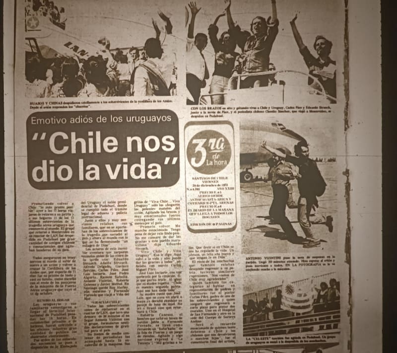 El diario argentino Clarín también dedicó varias páginas de sus entregas a describir el accidente y los días de los jóvenes en la nieve. Como “Milagro de Navidad en la Cordillera” tituló uno de sus artículos, donde además describían el júbilo vivido en Uruguay cuando los ciudadanos recibieron la noticia.