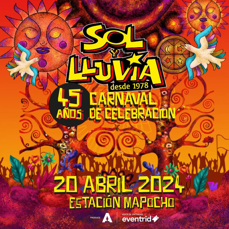 La invitación está hecha para celebrar y festejar los 45 años de Sol y Lluvia, el sábado 20 de abril en la Estación Mapocho. Tickets disponibles a través del sistema Eventrid y en boletería el día del concierto.