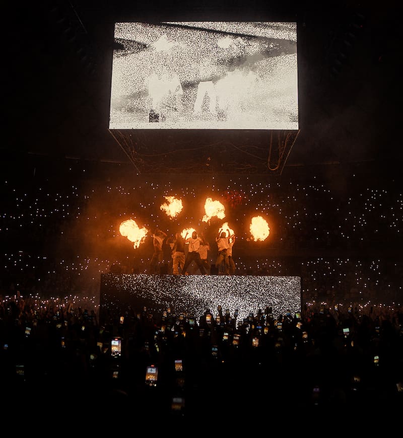 El artista dedicó también una canción a Galee Galee, cantante que falleció en mayo de 2023, a sus 29 años; interpretación que realizó con Tunechikidd y Kreamly. “In loving memory of Gabriel Zuñiga. Tu legado vivirá x siempre en nuestros corazones”, aparecía en la gran pantalla.