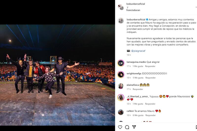A través de su cuenta de Instagram, el conjunto comunicó que Mauricio Basualto se encuentra bien y que sigue en recuperación del cuadro hipertensivo sufrido en el norte. “Hoy llegó a Concepción, en donde su prioridad será cumplir el período de reposo que los médicos le indiquen”.
