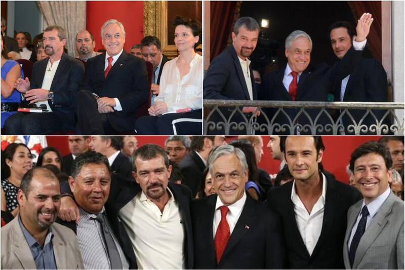 También hay fotografías de Sebastián Piñera con parte del elenco de la película – Antonio Banderas y Rodrigo Santoro –, dos de los mineros rescatados y el exministro de minería durante su gobierno, Laurence Golborne.