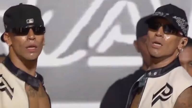 A las 18:01 horas, los hermanos y su cuerpo de baile pisaron en el escenario y desataron los gritos del público. Con alas de ángeles, la pareja icónica de la danza chilena se posicionó en medio de sus bailarines y bailaron Pégate, una de sus canciones. “Hoy nos unimos más que nunca”, dijo el dueto.