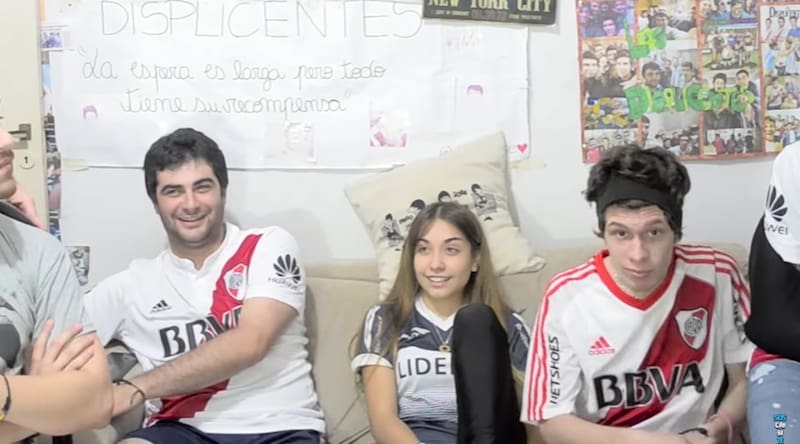 En uno de esos vídeos, titulado cómo “Reacciones con María Becerra-Pedrito VM-Ale Sanzi/ Gimnasia 2 River 1″, María Becerra de aproximadamente 18 años, participó con los integrantes viendo el partido.