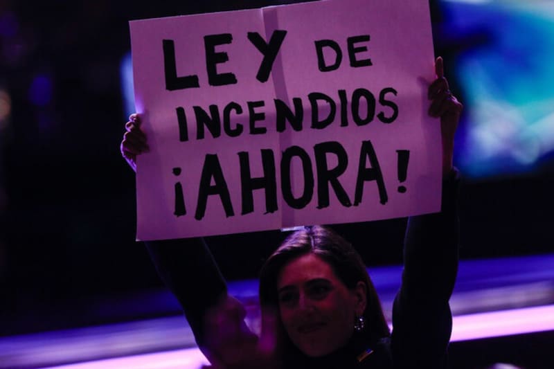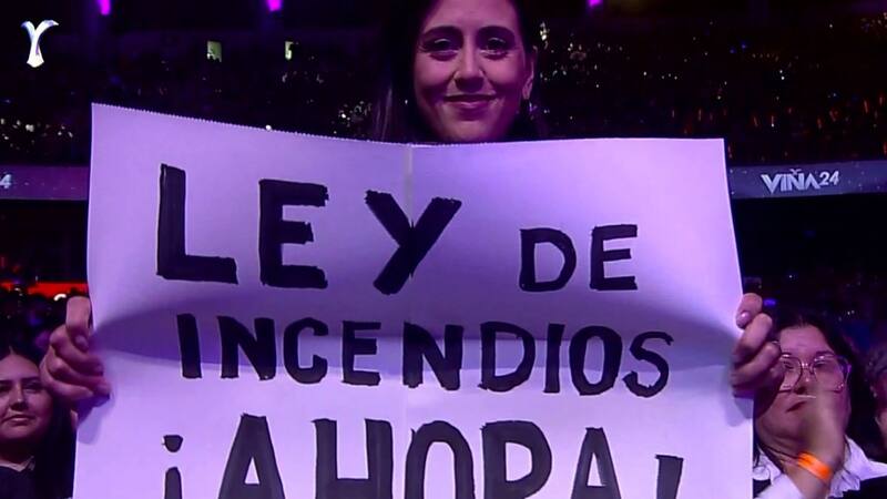 “Ley de incendios ¡Ahora!” fue el cartel que mostró Ripamonti tanto en televisión como al público de la Quinta. Un mensaje que marca la primera alusión política en relación a los incendios en este Festival de Viña 2024.