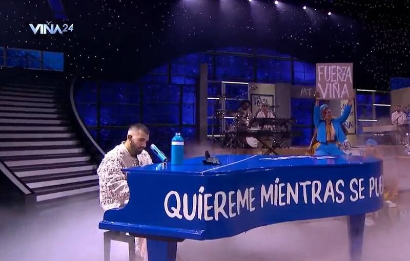 “Fuerza Viña”, rezaba en los carteles que sus bailarines sujetaban al lado del piano en el que interpretaba una versión acústica.