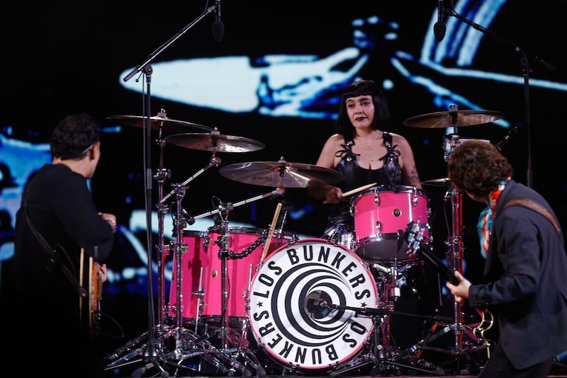 Y a tono con el tono celebratorio, apareció en escena el primer número. El regreso de Los Bunkers a la Quinta Vergara, en su tercera presentación en el Festival (tras sus shows de 2007 y 2012) fue celebrado con una cerrada ovación del “Monstruo” (aunque hubo algún acercamiento para llevarlos a Viña en 2023 cuando se bajó Maná, al igual que a Los Tres y Beto Cuevas). El redoble de apertura de Miño, el hit de Canción de lejos ejecutado con precisión por la cantautora Cancamusa (el alias de la valdiviana Natalia Pérez), en reemplazo temporal de Mauricio Basualto, abrió la presentación.