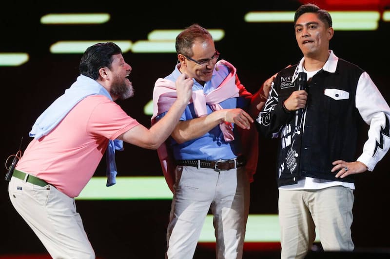 Pero Freire funciona en sus propios tiempos. Como un viejo crack del stand up. Buen contador de historias, con el oficio que dan los años en su profesión, sabe tocar las teclas del público para mantenerlo alerta y expectante. Pero también, a veces, ralentiza demasiado su actuación y la tensión se aleja como sucedió con la presencia de sus colegas Juan Pablo Flores y Rodrigo Salinas emulando a dos empresarios sin escrúpulos. Era una escena equivocada. Más bien, parecía un sketch televisivo –bueno, el festival de Viña es un programa de televisión- previsible y excesivamente noventero que un diálogo para representar en la Quinta Vergara. El auditorio, con una nutrida cantidad de sub 40, celebró el reencuentro de tres ex compañeros. Pero no río de forma desaforada y sincera.