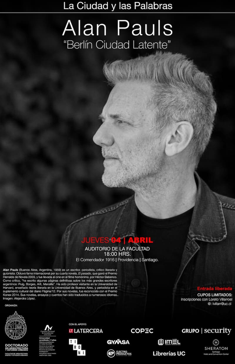 El destacado autor argentino Alan Pauls (64) es el invitado que tendrá el ciclo La ciudad y las palabras, que organiza el Doctorado en Arquitectura y Estudios Urbanos de la Pontificia Universidad Católica. La actividad se realizará el próximo jueves 4 de abril a las 18.00 horas en el auditorio Fernando Castillo Velasco, del Campus Lo Contador. El trasandino dará una conferencia titulada “Berlín Ciudad Latente”, en que explorará el nexo entre la urbe germana -donde reside- y la literatura.