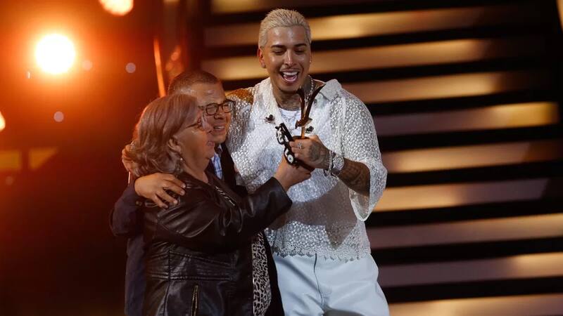 Minutos después, el público pedía el reconocimiento de oro, en medio de los gritos de la gente y de la emoción de Young Cister, ya con los animadores arriba del escenario, la cámara captó el momento cuando Esteban pregunta por su mamá, ya que no estaba sentada viendo el show. Es ahí cuando los padres entran por el lateral de la tarima para hacer entrega del galardón, con notoria emoción.