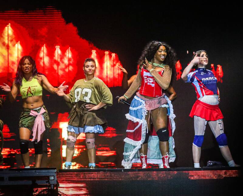 Tal como en la segunda jornada del Lollapalooza de Argentina, la norteamericana sacó a relucir toda su artillería desde el minuto uno. Con un desplante escénico despampanante y una coreografía muy bien ejecutada que no la distrajo en ningún momento, dio curso a un show repleto de hits que tuvo como locación las dependencias de un barco. Todo, en referencia al arte de su exitoso último disco SOS, y que dio como resultado una llamativa escenografía de dos pisos a la que supo sacarle el máximo provecho.