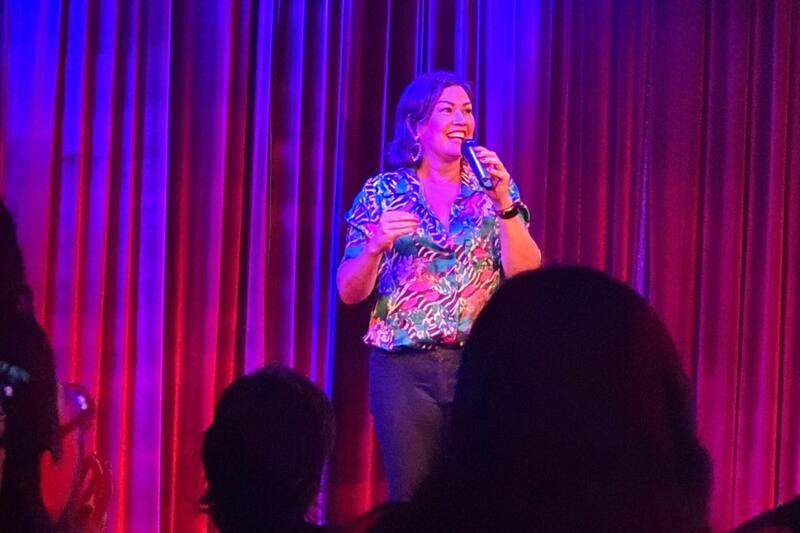 Según cuenta Viñolo, la decisión de no difundir de forma masiva el evento vino desde el local, no de la comediante. “Fue una idea mía como para cuidarla, siendo que es una artista increíble, tiene un ángel que traspasa el escenario”, dice el dueño del espacio, quien además señala que fueron cerca de 130 los tickets vendidos. “No le bajó la venta. Las entradas se vendieron sin nada de publicidad, se agotaron las entradas en poquito tiempo”.