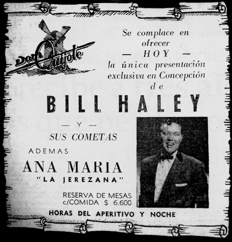 En 1960, visitó Chile con su banda Bill Haley & His Comets. La gira incluyó la capital, con un concierto en el Teatro Caupolicán y otros en bares y restaurantes; la gestión estuvo a cargo principalmente de la Radio Portales, estudio en el que también interpretó algunas canciones.