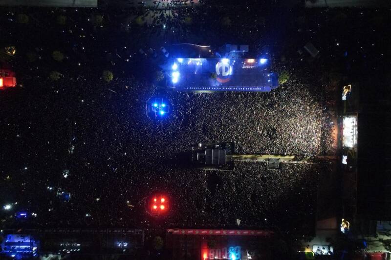 Con pisos e impermeables, los primeros fanáticos de Los Bunkers se acomodaron en la primera fila del escenario Entel en el Parque Bicentenario. Eran cerca de las once de mañana y las nubes se imponían sobre la estructura que acogería a los penquistas. Casi diez horas después, a las 20:40 horas, Los Bunkers se subieron al escenario a enfrentar a un público desbordante. En las calles aledañas, tras el escenario y, por supuesto, enfrente de los dos stage principales, la gente se aglomeraba para ver lo más cerca posible a la banda.