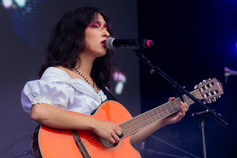 Al lado, en el escenario Escudo, tímidamente llegaban los primeros fanáticos de Javiera Electra, cantante radicada en Concepción que promete romper para construir. Dos minutos antes de la programación, apareció con un vestido blanco y una copa de vino en la mano. Conquistó a quienes vinieron a verla y atrajo con su profunda voz a los curiosos que llegaban al Parque Bicentenario. Cantó parte de su EP REPRÍS, yendo y viniendo desde la cueca a los ritmos flamencos. “Aquí está la resistencia trans”, gritó, recibiendo ovaciones de los presentes. Espada en alto y tras beber su copa, terminó su espectáculo ganándose uno que otro admirador. Sin dudas, una propuesta refrescante para comenzar el REC. Se convirtió la primera persona transgénero en estar en el lineup del evento.