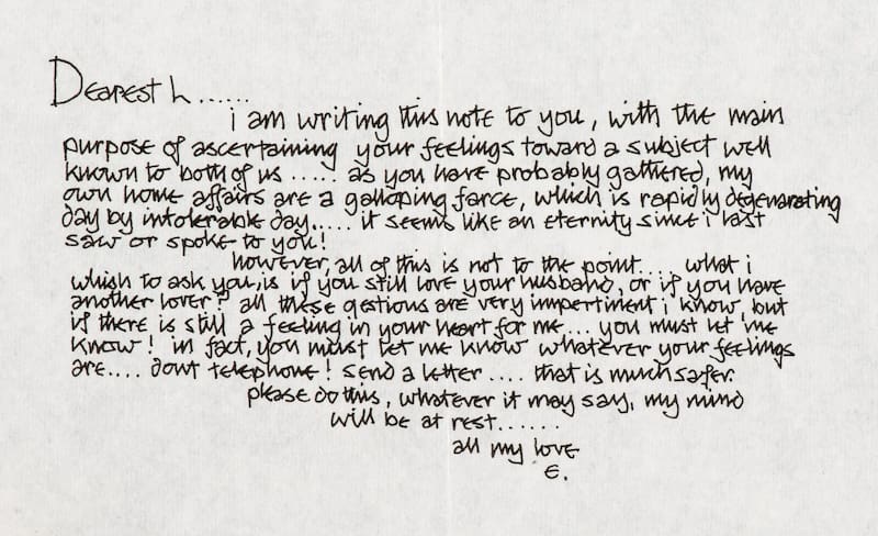 Horas antes, una misteriosa carta dirigida a Boyd llegó a la enorme mansión de Friar Park y comenzaba llamándola “Queridísima L”. Y luego, unas líneas arrojadas: “¡Parece que ha pasado una eternidad desde la última vez que te vi o hablé contigo!”. A medida que Boyd seguía leyendo, la nota tomaba un tono desesperado: “Si todavía sientes algo por mí… ¡debes hacérmelo saber!”.