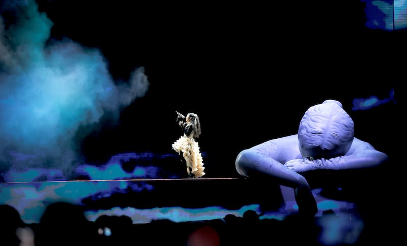 Es probable que la inspiración de esta propuesta con tintes teatrales provenga de los últimos espectáculos de adelantados como C. Tangana y Rosalía, modalidades de concierto que rehuyen del clásico show musical, estrenando canciones rotuladas en un álbum. Según este guión, la ejecución en directo se subordina al aspecto visual y el despliegue coreográfico, configurando un musical. La disposición tradicional de la banda de acompañamiento prácticamente desapareció, reducida a una alineación de percusión y batería en una esquina, un par de bronces y guitarra; el resto se empaca en generosas pistas grabadas.