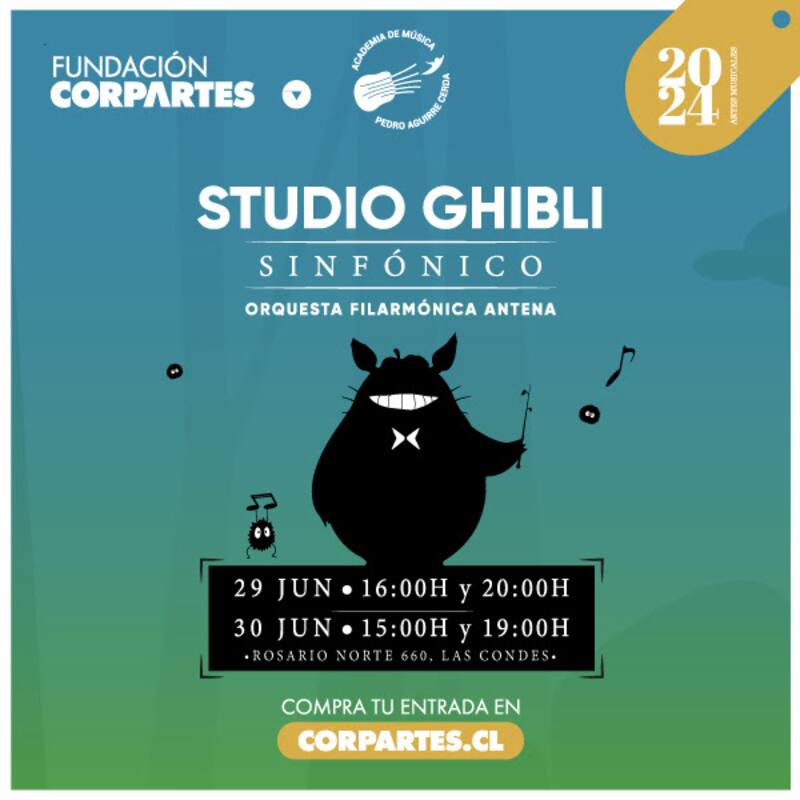 El espectáculo “Studio Ghibli Sinfónico” se presentará el sábado 29 de junio a las 16:00 y 20:00 horas, y el domingo 30 de junio a las 15:00 y 19:00 horas, en el teatro CA660 de Fundación CorpArtes , ubicado en Rosario Norte #660, piso -2, comuna de Las Condes.