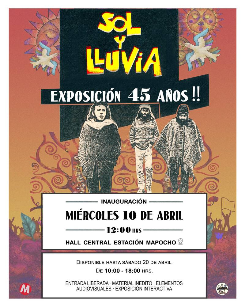 Como parte de las actividades de conmemoración de sus 45 años, Sol y Lluvia ofrecerá al público una exposición donde darán cuenta de su legado como una de las bandas más populares de la música chilena. La inauguración de la muestra fue el pasado miércoles 10 de abril al mediodía en el hall central de la Estación Mapocho, con la presencia de su líder y vocalista Amaro Labra, los exintegrantes y fundadores, Charles Labra y Jonny Labra, y los actuales miembros de la agrupación.
