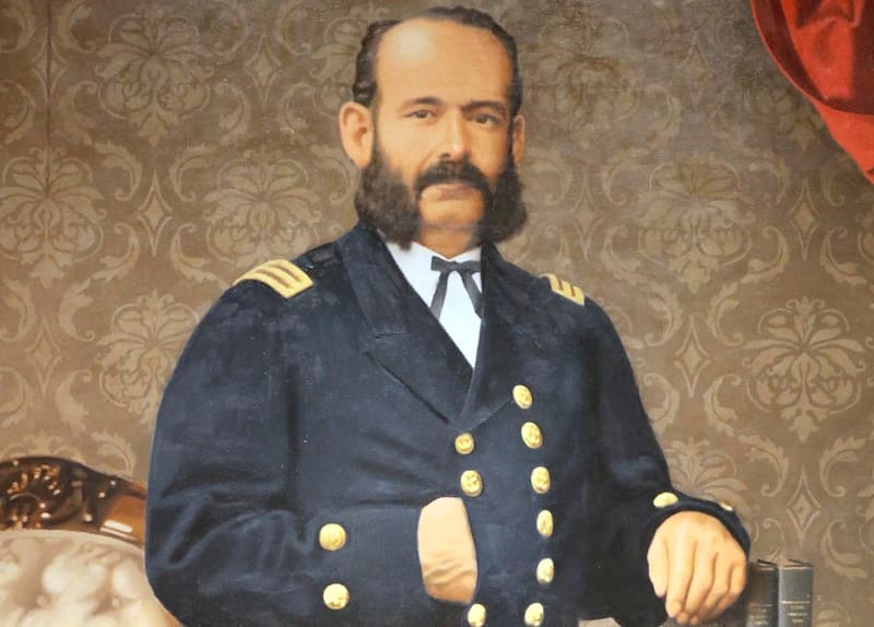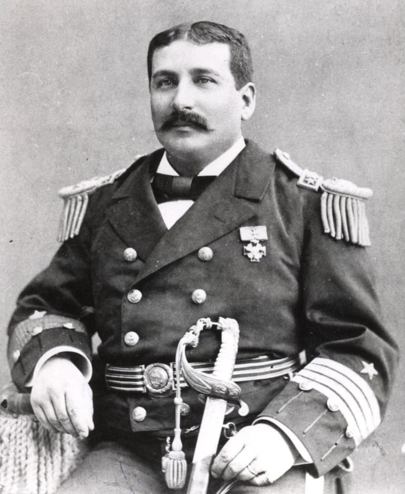 Está Enrique Simpson, también aparecen Juan José Latorre y Galvarino Riveros como comodoro recién nombrado para asumir el mando de la escuadra. Los personajes históricos siempre tiene una base documental, entre biografías o partes de sus vidas registradas en fuentes históricas, pero la idea tampoco es hacer una reconstrucción pormenorizada de cómo fueron, porque no es algo que me interese reproducir. Estamos hablando de ficción, no de Historia. Desde ahí, la idea es que estos personajes cobren un carácter propio, construido desde lo documentado, pero también simplemente mirando sus fotografías e imaginando cómo pueden haber sido, qué pudieron haber deseado, qué cosas los hacían vibrar, enojar y emocionar. Una suerte de retrato capturando su esencia, intentando ahí ser fiel a lo que se sabe gracias a la Historia, pero a la vez imaginados en versiones suyas que pudieron haber sido.