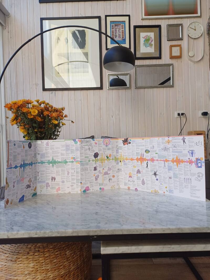 Por una parte, comprende que su mapa tiene una visión principalmente occidental de los sonidos. Pero, por otra, también destaca algunas figuras que dice idolatrar y casi no tuvieron espacio. “Hay un montón de hitos que dejé fuera, por ejemplo, nunca hablé de Gustavo Cerati o de Charly García, que son artistas que yo he escuchado toda mi vida. O sea, no está la Mercedes Sosa. Y al ver la alternativa digital, me decía, claro, ahora va a ser más fácil ir actualizando. El mapa que tengo físicamente espero ir actualizándolo cada tres años. Quizás con distintos enfoques, diferentes miradas”.