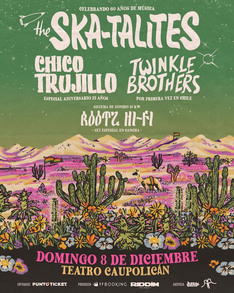 Por su parte, Chico Trujillo también confirmó su equipo estelar para esta noche, donde el carismático Aldo “Macha” Asenjo repasará los grandes éxitos que ha cosechado con esta agrupación como La medallita, Loca o Déjame decirte algo en sus 25 años de vida musical, canciones que han nacido gracias a la mezcla de música tropical con otros sonidos como el ska y el reggae. El grupo autor de éxitos como Fuera de mi vida ya compartió escenario con Skatalites en 2022 en un inolvidable show realizado en la ciudad de Buenos Aires.
