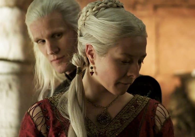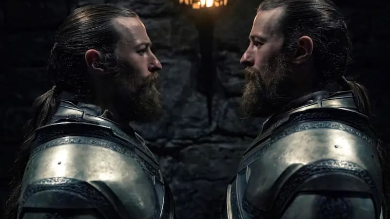 El razonamiento de Cole, es que Ser Arryk (Luke Tittensor) podrá llegar hasta los aposentos reales, debido a que puede ser confundido con su hermano gemelo, Ser Erryk (Elliott Tittensor), quien se mantuvo leal a la reina. Con la aprobación del cada vez más paranoico e irascible Aegon, se ejecuta el plan. Y como todo en el universo de George RR Martin, nada sale como parece; Ser Arryk llega hasta la habitación de Rhaenyra y cuando va a proceder a matarla, aparece Ser Erryk. “No lo hagas”, le grita.