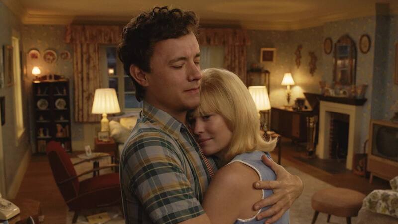 En Here, el protagonista es Richard, interpretado por Hanks, quien en ciertos momentos de la película tiene aproximadamente la edad de 67 años, pero el filme tiene una concepción del tiempo muy plástica, ya que lo muestra en otros movimientos temporales. Por ejemplo, cuando envejece hasta los 80 y cuando es joven en la década de 1960, cuando todo se movía rápido. Por su parte, Wright es Margaret, la novia adolescente y luego esposa de Richard. Los vemos en sus primeros acercamientos en los sesentas, luego la pareja cría a sus hijos en la misma casa en la que él creció, algo así como la casona de los Buendía en Cien años de Soledad.