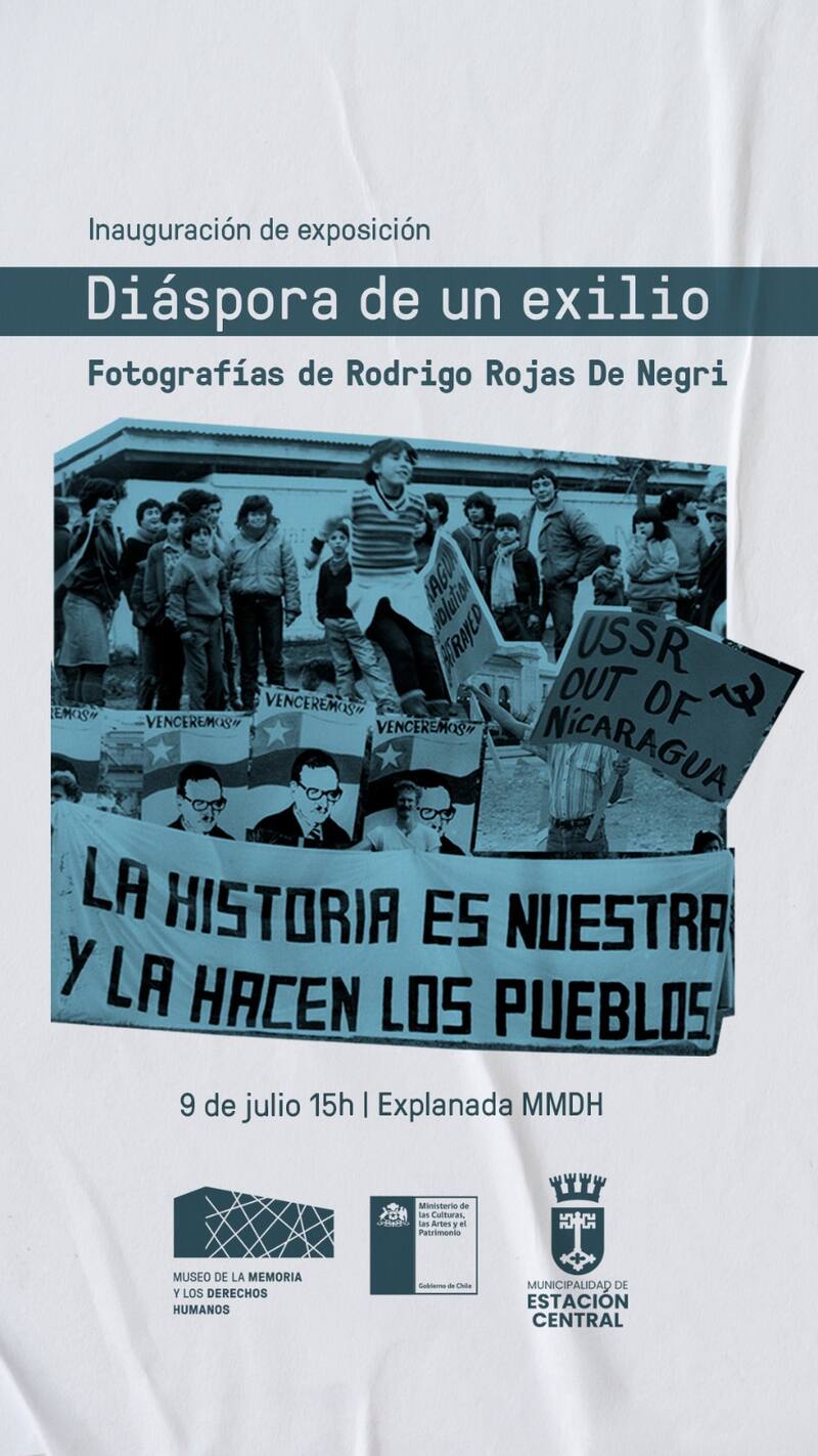 Continuando con la conmemoración de los 50 años del Golpe de Estado, la Municipalidad de Estación Central, en colaboración con el Museo de la Memoria y los Derechos Humanos, inaugurará la exposición “Diásporas de un exilio”, muestra fotográfica basada en la curadoría de Montserrat Rojas Corradi y que persevera la memoria del joven fotógrafo chileno-estadounidense Rodrigo Rojas De Negri.