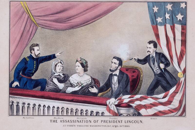 A las 22.25 de la noche del 14 de abril de 1865, en el palco de honor del Teatro Ford, Washington D. C. sonó un estruendo que estremeció a los concurrentes que habían ido a ver la obra de teatro Our American Cousin. Fue un actor, John Wilkes Booth, simpatizante de la Confederación, quien descerrajó un disparo en el cráneo del mandatario. Lo intentó detener uno de los acompañantes del mandatario, el mayor Henry Rathbone, pero Booth lo apuñaló y arrancó tirándose por el mismo palco hacia el escenario, donde se paró y gritó “¡Sic semper tyrannis!” (¡Así siempre a los tiranos!”), luego escapó a caballo y fue abatido días después.