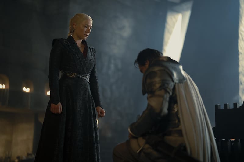 Hacia el final del capítulo ambas mujeres protagonizan un íntimo momento. Rhaenyra admite no saber si podrá imponerse como ganadora del conflicto y profundiza en la incomodidad que le genera que su entorno sea tan majadero en que debe buscar el retorno de Daemon (Matt Smith), quien aún no envía noticias desde Harrenhal.