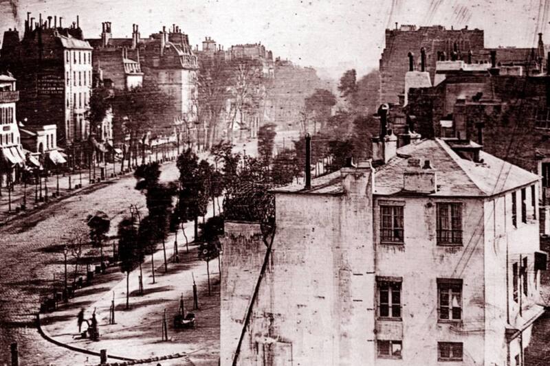 Niépce, un terrateniente francés, químico, litógrafo y científico aficionado, había conseguido la primera fotografía en 1827, gracias al uso de una cámara oscura y una placa recubierta de betún como material fotosensible. La imagen se capturó después de ocho horas de exposición.