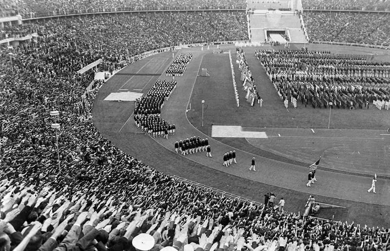 Luego comenzó el tradicional desfile frente a las autoridades. “Las delegaciones pasaron frente al palco que ocupaba Hitler, saludándolo, y este respondía a cada una de ellas”, detalla la nota de La Nación.