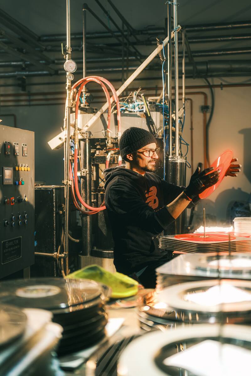 Técnicas de producción y prensado de vinilos, presentadas por profesionales de la industria. Organizada por la fábrica nacional en sus instalaciones.