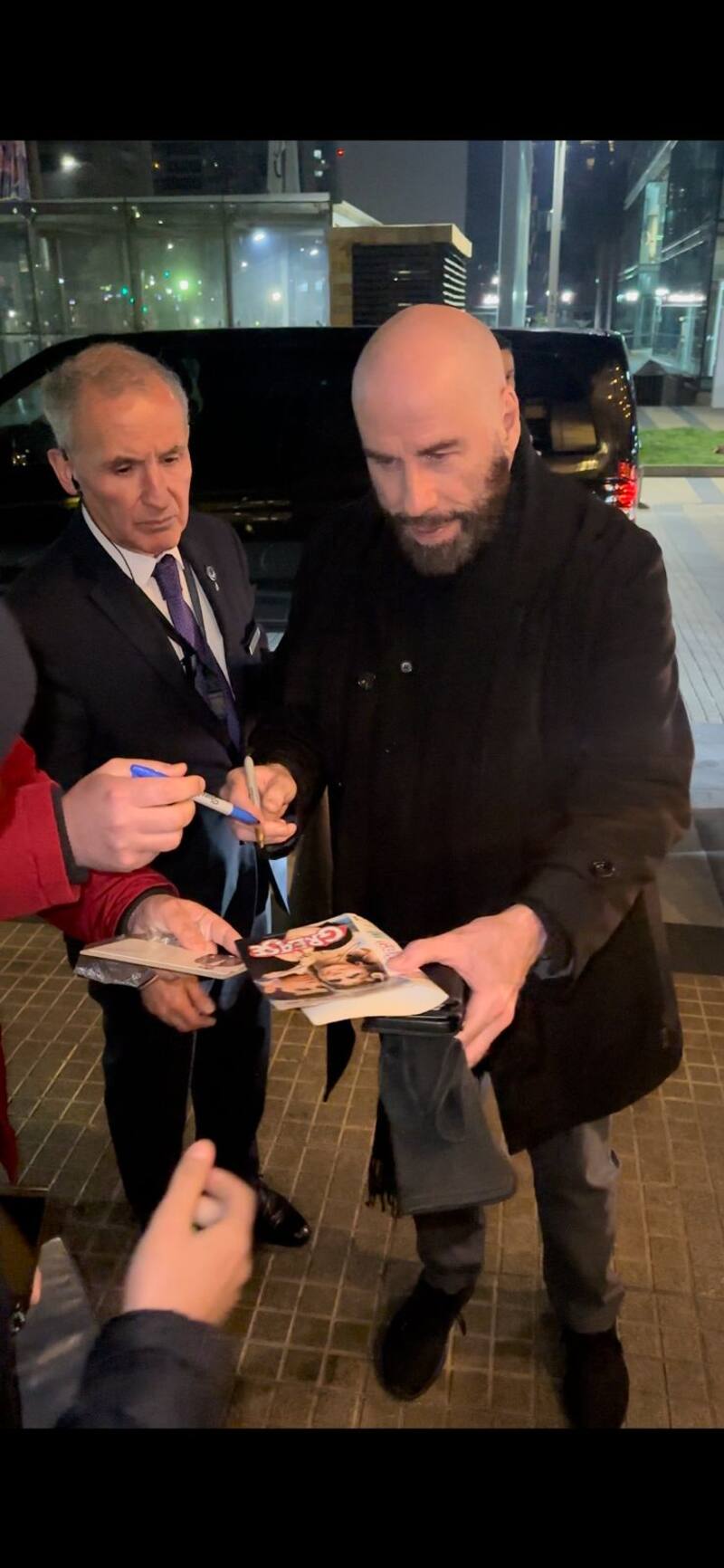Uno de ellos le pasó un casete de Grease que ya estaba firmado por Olivia Newton-John, en su venida al país de 2016. La idea era que Travolta pusiera también su rúbrica ahí. Cuando el actor vio el álbum, lanzó una expresión de alegría y emoción (ver foto abajo).