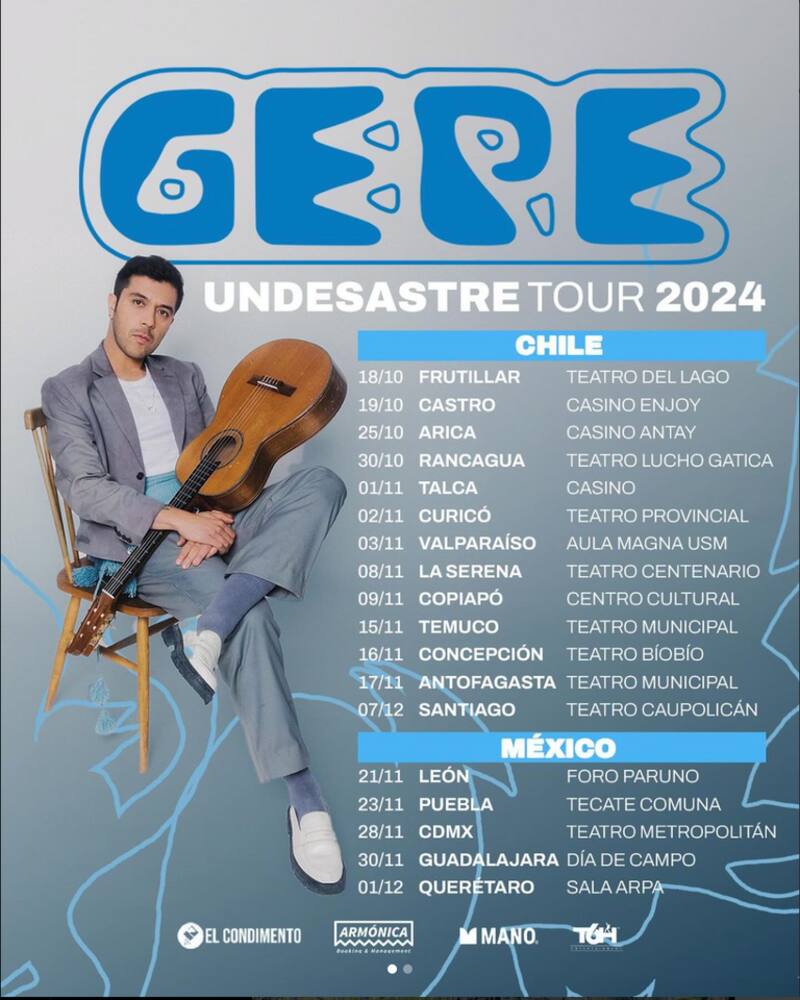 Gepe continúa promocionando la gira que lo llevará por Chile. El UNDESASTRE Tour pasará por 13 ciudades de nuestro país y luego a México. Las entradas para los espectáculos en regiones están disponibles en Ticketplus y para el espectáculo en Santiago a través de Puntoticket.