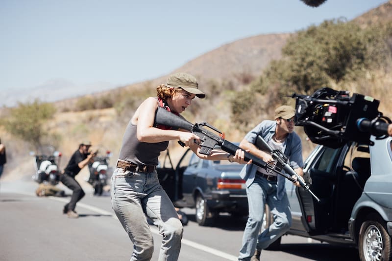 “Tuvimos que simular lo que pasa cuando disparas un arma de ese calibre y coreografiar lo que habíamos ensayado para ese momento. Fue una escena compleja, pero que disfruté muchísimo. Una escena de mucha euforia”, explica Mariana Di Girolamo días después del final del rodaje.