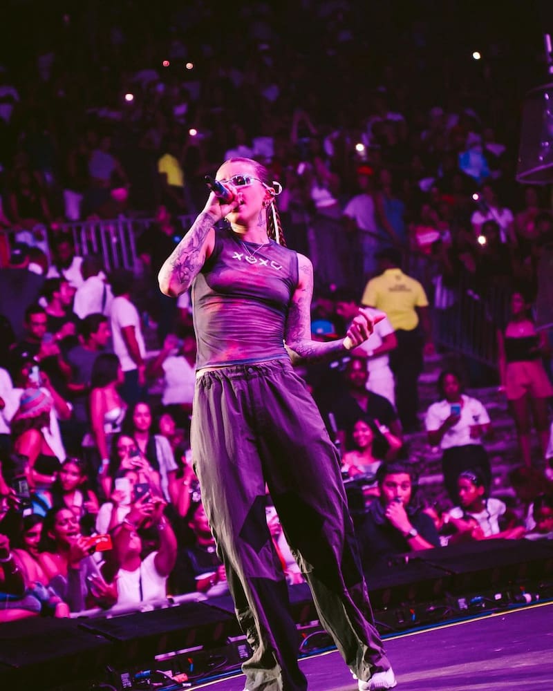 El público chileno fue de mis primeros crowds más grandes ever, que fue Lollapalooza. Me acuerdo que Lisa recién había salido y Big Booty también y eran dos temas que estaban muy metidos en su momento. Y pues fue como la primera vez que mi equipo y yo nos mirábamos en la tarima como, “wow, ¿qué está pasando? Estamos muy lejos de casa, pero el público definitivamente nos recibió con una energía inolvidable”. Yo nunca voy a olvidar ese show. El calor que hacía, lo activo que estaba la gente, sin importar el calor, sin importar la hora del día que era, el sol estaba ahí con nosotros y la gente no le bajó ni un segundo, estaba súper lleno.