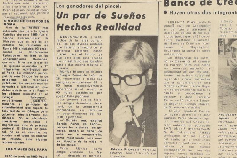 También emerge en el relato uno de los pasajes más icónicos de la vida de Mónica Briones, hecho que quedó registrado en la prensa de los noventa. A sus 19 años, participó de una maratón de pintura que desafiaba a que los concursantes sostuvieran el pincel sobre el lienzo durante 72 horas. Nadie lo logró, pero Mónica fue la que más tiempo permaneció en la lucha. En Con mi recuerdo encendí el fuego este episodio tiene un lugar central, gracias a la recreación que hace Montecinos.