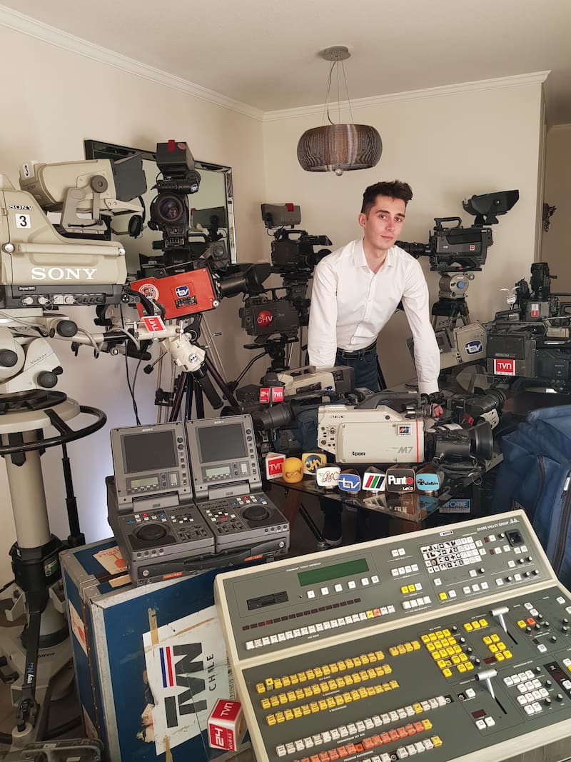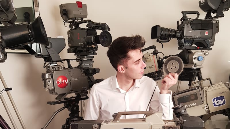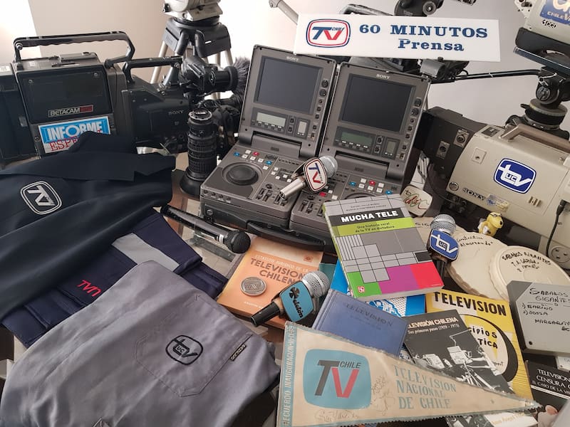 El link con los camarógrafos fue la llave para iniciar una colección de equipos de las señales abiertas que supera las 500 piezas, incluyendo cámaras de programas históricos como Informe Especial, Vamos a ver, Extra jóvenes, La Noche del Mundial, Rojo, los estelares de Felipe Camiroaga, lentes utilizados en el Festival de Viña del Mar en los 80, mesas de dirección, editoras, cintas con fanfarrias y características de Sábados gigantes, ropa utilizada por personal tras los focos como las cotonas blancas de Canal 13, divisadas en viejos espacios cuando los camarógrafos enfocaban algún chascarro, y las chaquetas corporativas de sus colegas de TVN en la misma época.