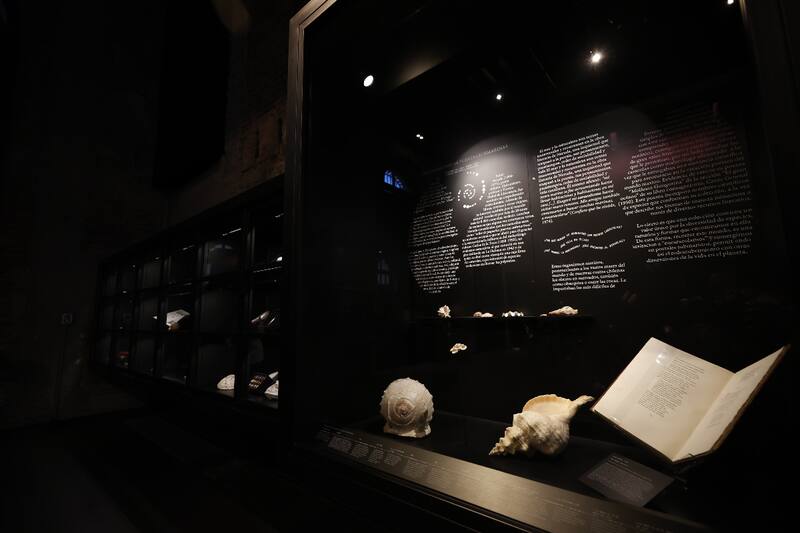 Al entrar al lugar, la luz tenue evoca la profundidad del océano y las estructuras que sostienen las caracolas figuran como corales en movimiento. Para Elizabeth Burmann, artista visual encargada del montaje, sigue siendo un misterio por qué a Neruda le interesaban tanto estos objetos. “Ese misterio va inundando el relato”, dice a Culto.