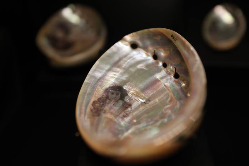 Muchas de esas caracolas llegaron a las manos de Neruda por caminos insospechados. Avanzando por el costado derecho de la sala, dentro del gabinete, hay una serie de caracolas con los rostros de personas insertas en las conchas, gracias a técnicas de sublimación. “Es una familia completa, no sabemos quiénes son, ni cómo Neruda las encontró. Está incluso la casa representada”, relata Calderón.
