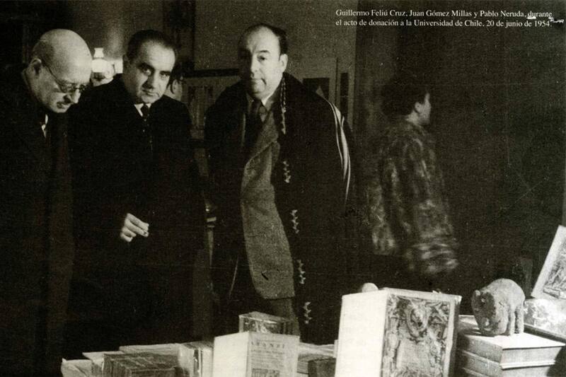 Cuando cumplió 50 años, en 1954, Pablo Neruda donó gran parte de su colección de caracolas y textos al acervo personal de la Universidad de Chile. En su casa en La Reina, ubicada en Avenida Lynch 164, realizó una ceremonia privada junto a sus amigos, entre quienes estaban el rector de esa casa de estudios, Juan Gómez Milla, Salvador Allende, Volodi Teitelboim, Alejandro Lipschtz, Delia del Carril, Laura Reyes, entre otros.