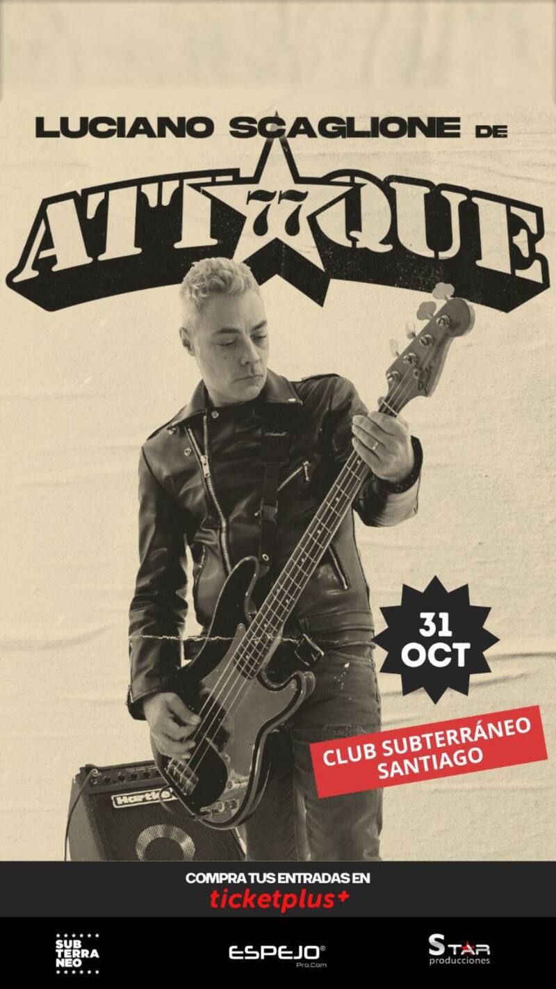 El músico argentino Luciano Scaglione, conocido por su trabajo como bajista de la banda Attaque 77 se presentará en Chile como solista.