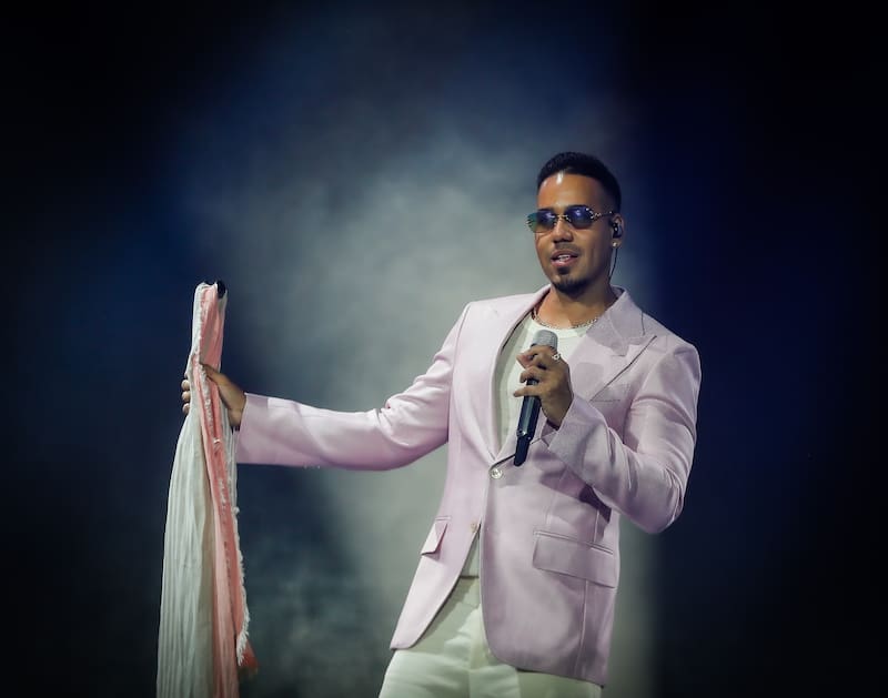 En Romeo Santos hay un placer ficcionado por encarnar al tercero -”tu marido”, repite con su voz aguda y cantarina en Los Infieles-, y por bosquejar los tipos de hombres que existen según su juicio, como relató en otro momento de conversación y pausa con la audiencia, definiendo tres categorías.