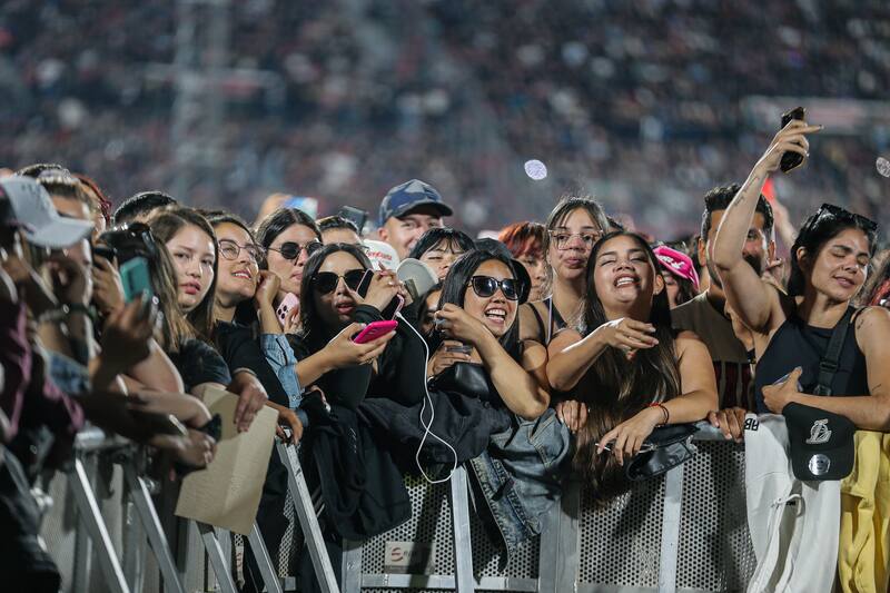 El público de Aventura es eminentemente popular y goza con el setlist que resuena a alto volumen. Karol G, Daddy Yankee, Juan Luis Guerra -el pionero en popularizar la bachata en los 90 en Hispanoamérica y luego a escala mundial-, y Zion & Lennox, entre otros, son parte de la previa; también un mix con Santaferia, Chico Trujillo y Rafaella Carrá, en una combinación kitsch que cumple el objetivo de calentar el ambiente. Pero son las canciones urbanas las que más corea y baila espontáneamente la asistencia; hits como Papi chulo, Chocha, culo, teta y Ultra solo, en un arco que abarca un par de décadas de música hecha en la América morena que caló en la masa, desplazando al histórico dominio del cancionero anglo en el paladar masivo.