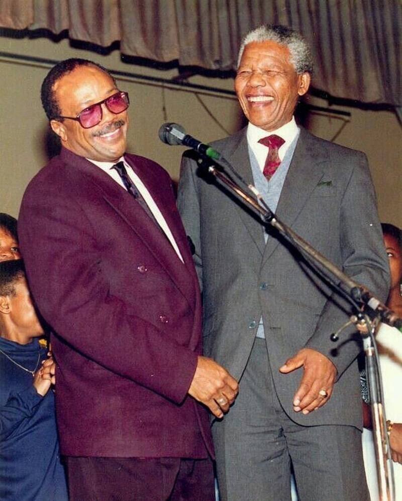 Cuando Nelson Mandela realizó la toma de posesión de la presidencia de Sudáfrica, Quincy Jones formó parte de la comitiva estadounidense en el acto oficial, en 1994. Además, cuando el exmandatario cumplió 90 años, ahí estaba Jones, presentándose junto a otros artistas como Amy Winehouse, Amaral, Leona Lewis, Peter Gabriel y Annie Lennox.