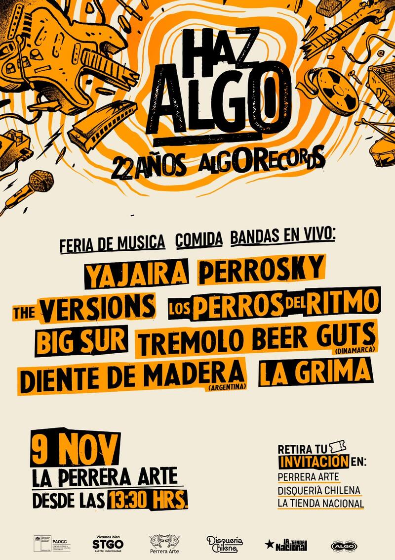 9 noviembre: Aniversario Algorecords en Perrera Arte, entrada liberada retirando pulsera en Disquería Chilena, La Tienda Nacional y Perrera Arte.